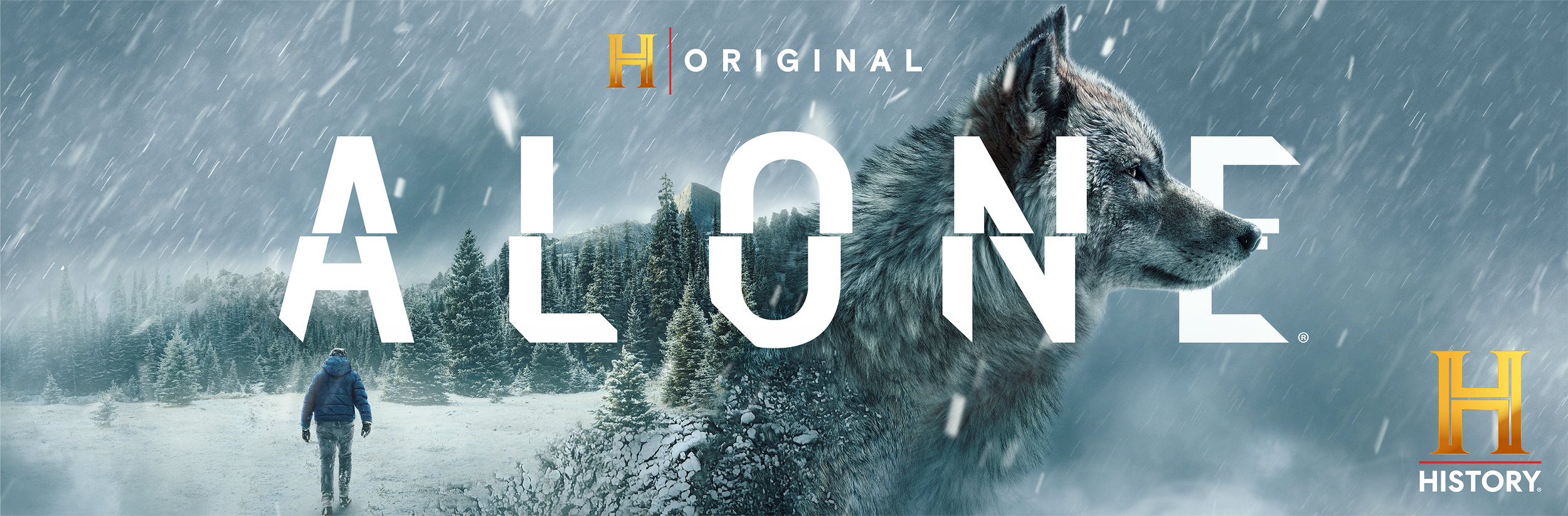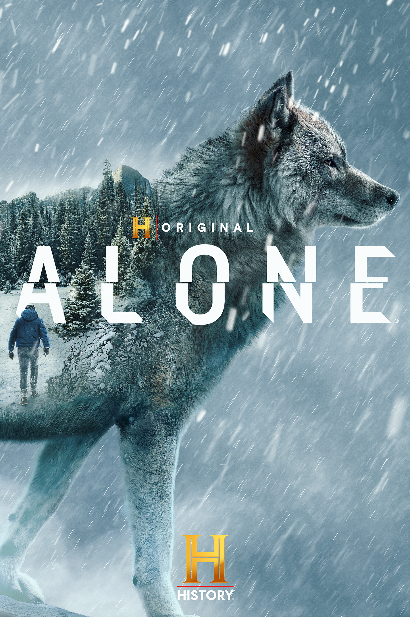 The art speaks to the essence of Alone: raw solitude, elemental danger, and the fragile boundary between man and wilderness.