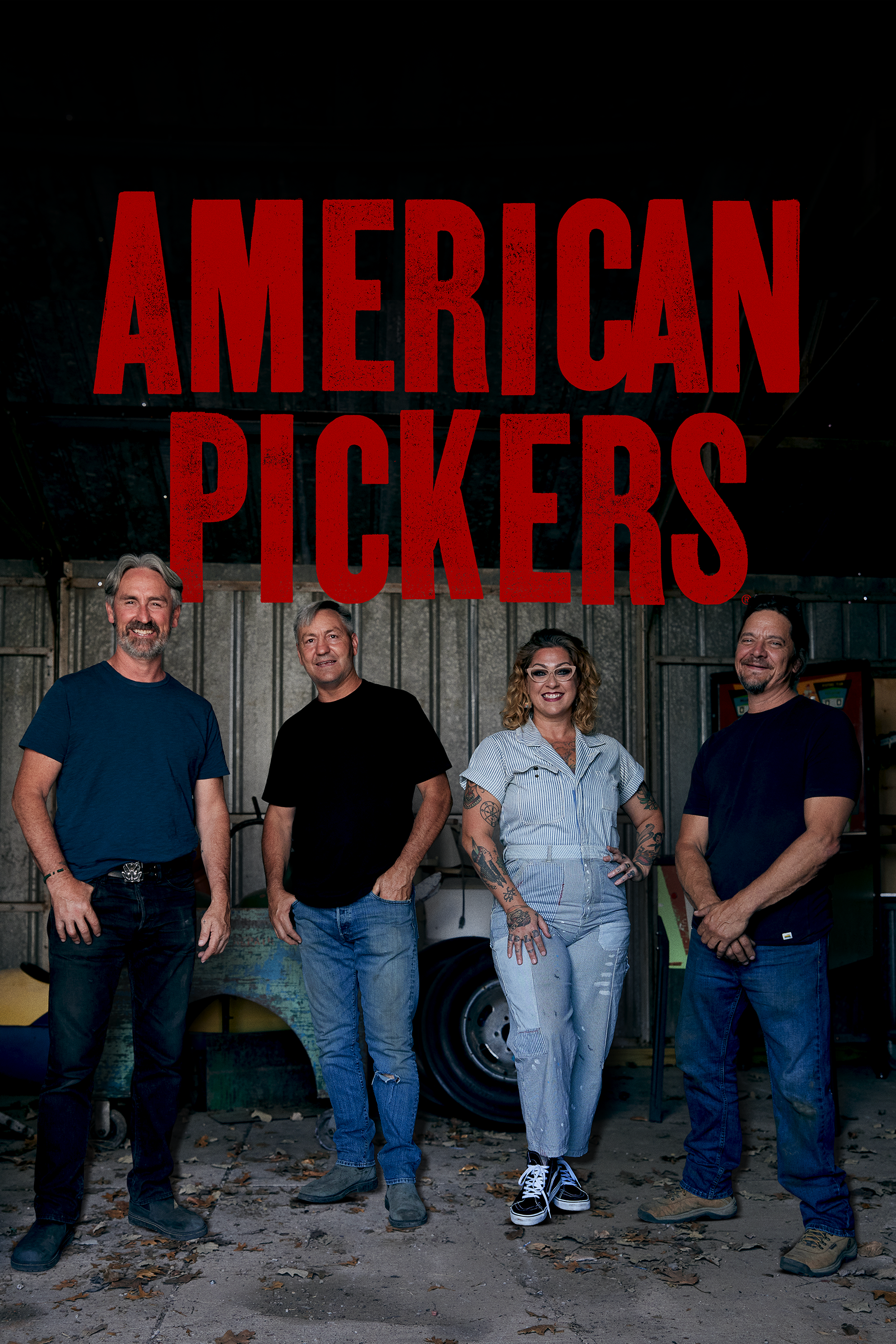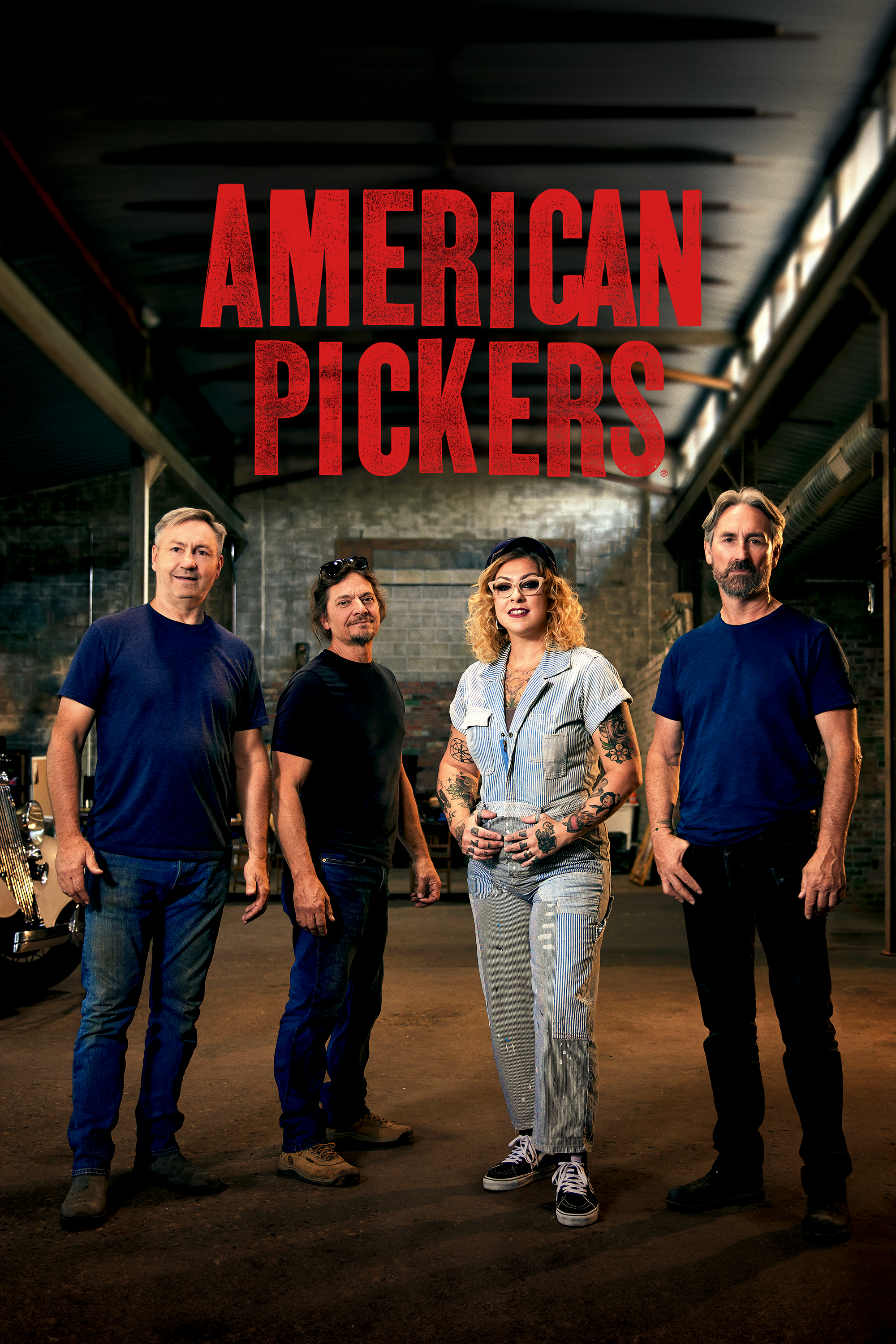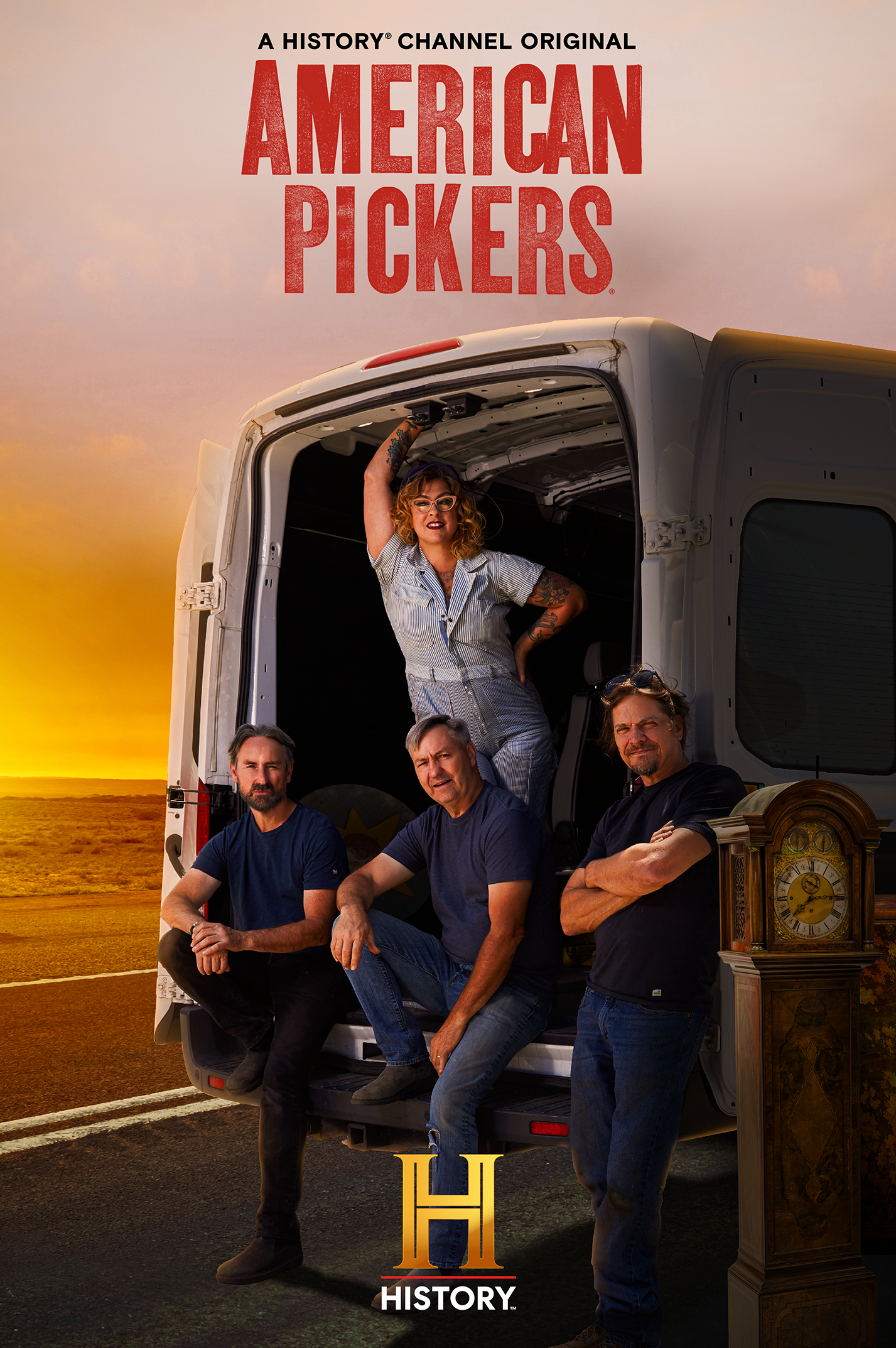 The key art for American Pickers captures the spirit of the open road and the enduring search for forgotten pieces of America’s story. Set against a golden sunset sky, the imagery places the cast and their finds at the intersection of history, craftsmanship, and curiosity. The light is warm and inviting, suggesting both nostalgia and renewal, as if each discovery carries a spark of the past into the present.